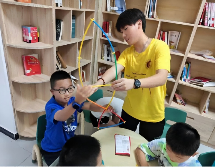 在一片歡聲笑語中,志愿者與孩子們共同進行了一場別開生面的吸管搭建活動。色彩斑斕的吸管在志愿者和孩子們的手中仿佛擁有了魔法,他們共同構思、設計,用小小的吸管搭建出一座座充滿創意的作品,有城堡、橋梁、火箭等。在這個過程中,志愿者們引導著孩子們一步步發揮自身的想象力,培養了孩子們的自我動手能力和團隊合作能力。