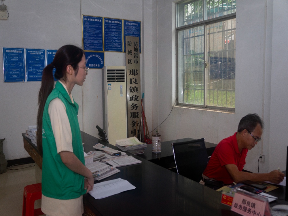 最后,實踐團抵達那良鎮政務服務中心,向政府工作人員提供收集到的鄉村發展與建設方面的建議。工作人員向成員們介紹了政府對于鄉村振興工作的整體規劃與部署,同時還就基礎設施建設、水質改善、特色產業發展、人才回流等關鍵議題展開了深入的交流。