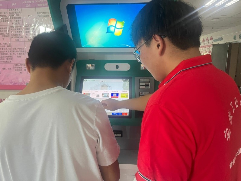 圖為志愿者在智能設備旁等候便民服務 中國青年網通訊員 唐添添 供圖