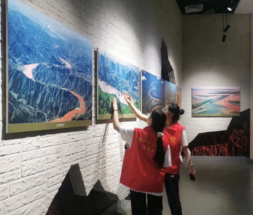 傳承“治黃”精神,匯聚青春力量黃河是資源的寶庫,亦是精神的殿堂。實踐小隊來到黃河博物館一同探尋先輩們千年來的“治黃”之道。實踐小隊分別從黃河的生態變化,發生的重大事件,治理黃河的歷史及主要人物展開調查。調查中,實踐小隊與游客探討黃河治理歷史,為游客講解黃河文化,一同感受先輩們治理黃河過程的艱辛,發掘“治黃人”所展現的精神內涵。