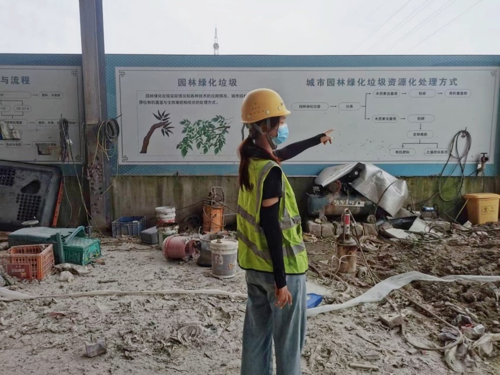 圖為實踐團隊楊瑞琪在了解垃圾回收處理情況