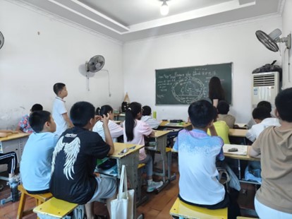 圖為蔣梓慧同學在向當地小學生宣講環保知識