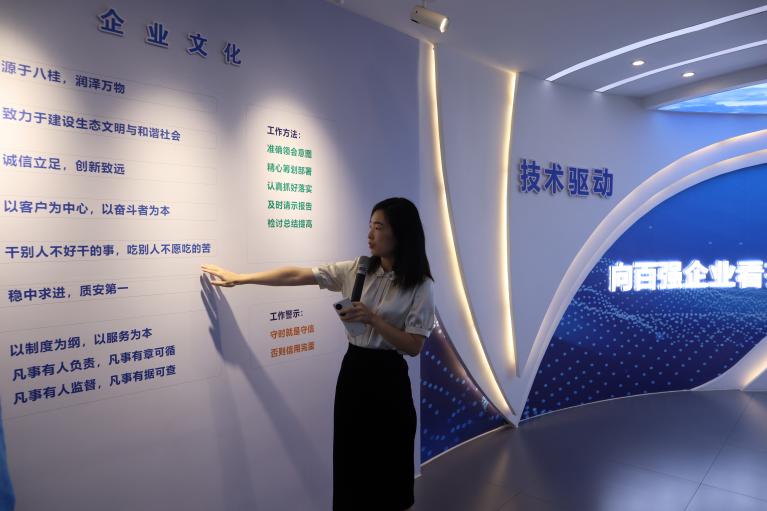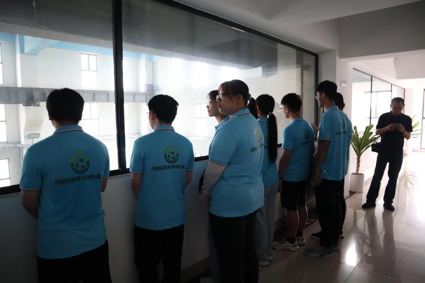 公司負責人熱情接待了實踐團一行,并帶領大家參觀了公司。在參觀過程中,公司技術人員詳細講解了桂潤環境科技有限公司的發展歷程、企業文化、企業技術和未來展望。實踐團成員認真聆聽并積極提問,與公司技術人員展開了深入的交流學習。