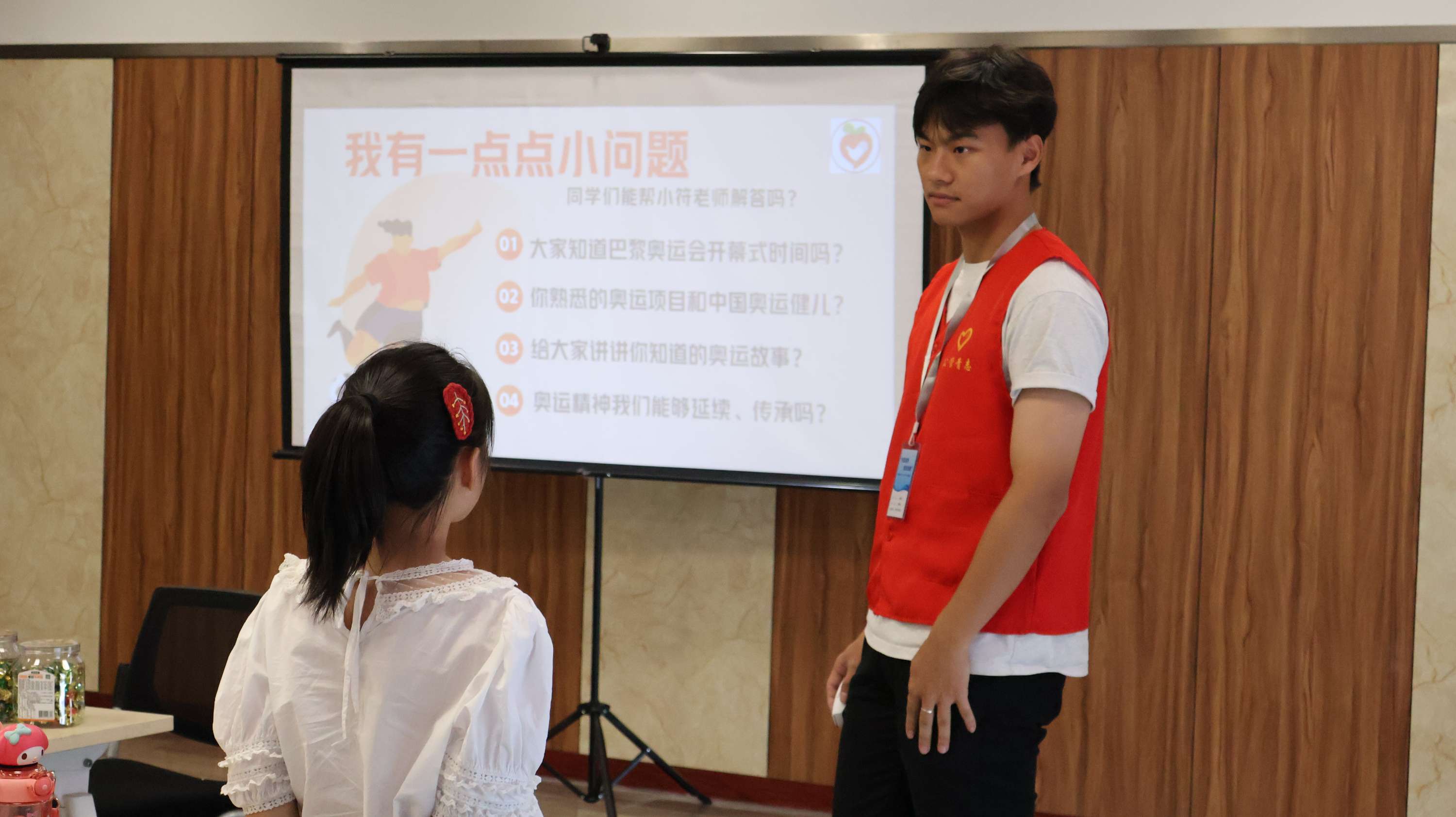 在2024巴黎奧運會即將到來之際,小朋友們通過這堂課了解奧運項目、中國奧運人物,感悟中國奧運精神,并學會廣泛運用奧運精神。課程從巴黎奧運會入手,考察每位小朋友對巴黎奧運會的了解程度,并積極傳達巴黎奧運會相關信息,宣揚“奧運更開放”的思想。從你畫我猜的小游戲出發,小朋友們對奧運項目有了更加具象的認識和了解。緊接著,實踐隊成員分享了自己熟知的三位奧運人物在其閃光冠軍背后的艱辛故事。故事中,小朋友們發現并理解了“頑強拼搏、永不言棄、堅忍不拔、團結友好、追求卓越”的奧運精神。在最后的課程環節,小朋友們紛紛贊同許諾要將奧運精神運用在學習生活中,并為中國代表團在巴黎奧運會的表現加油助威!