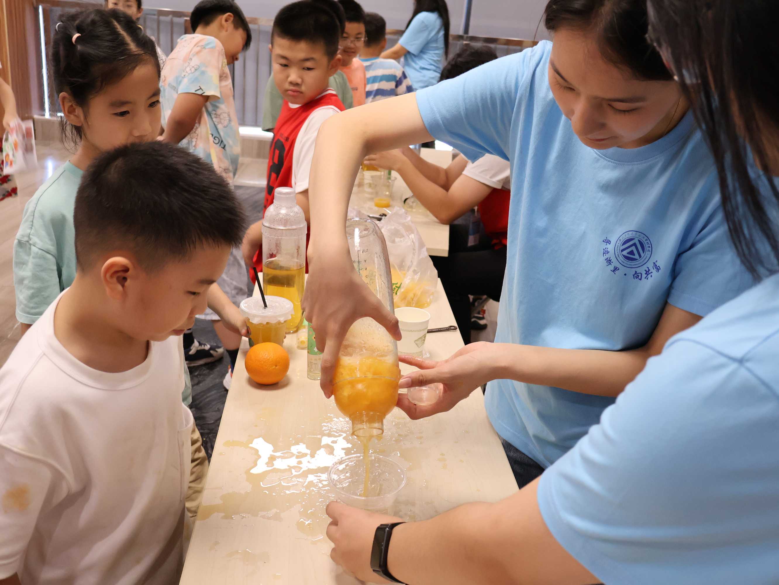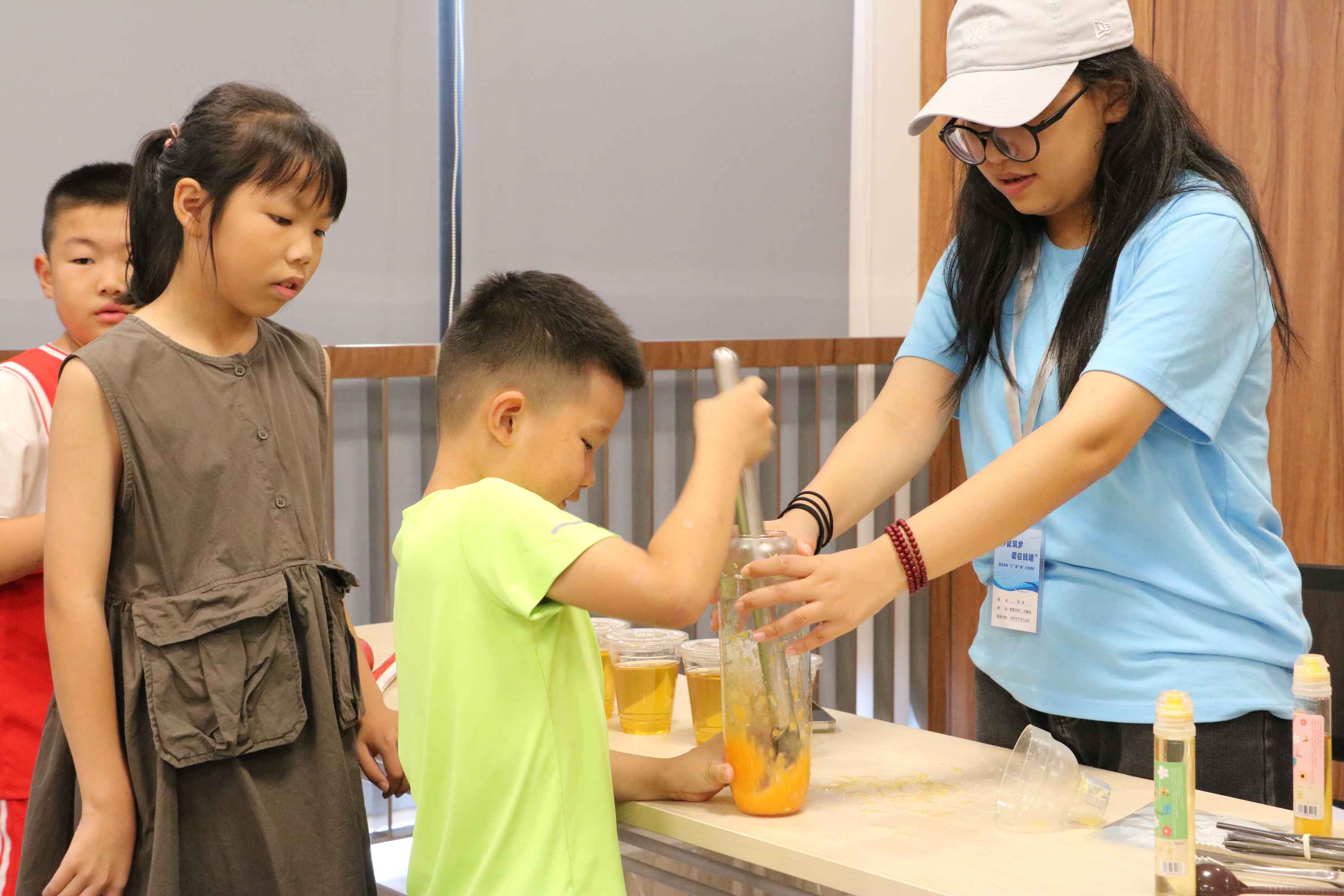 “慧啟青苗,‘工’富‘童’行”實踐隊協助小朋友制作美味水果茶