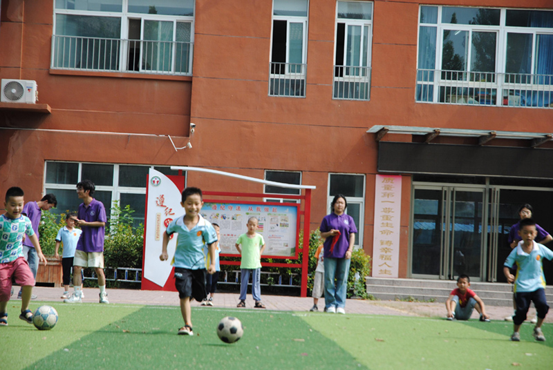 足球場上,孩子們帶球奔跑、揮灑汗水。孩子們像一群小麻雀一樣嘻嘻哈哈地奔跑著,足球在他們的腳下快速滾動,偶爾傳來一聲調皮的笑聲和輕快的腳步聲。他們在陽光下奔跑,留下了一段段美好的童年回憶。