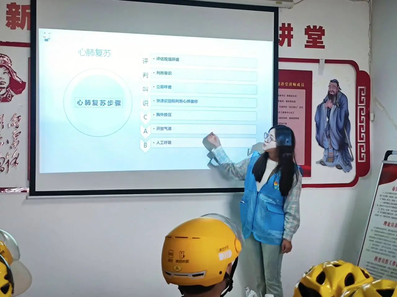 本次培訓(xùn)活動(dòng)分為理論講解與自主實(shí)踐兩部分。團(tuán)隊(duì)成員通過精心制作的ppt向參與者深入講解了心肺復(fù)蘇、海姆立克急救法及中暑急救方法,并現(xiàn)場(chǎng)演示心肺復(fù)蘇流程,從初步判斷意識(shí)狀態(tài)到迅速啟動(dòng)緊急響應(yīng)系統(tǒng),再到細(xì)致檢查并開放氣道、實(shí)施人工呼吸及精準(zhǔn)的胸外按壓,每一步都操作規(guī)范、講解詳盡,確保每位參與者都能清晰理解并準(zhǔn)確掌握。