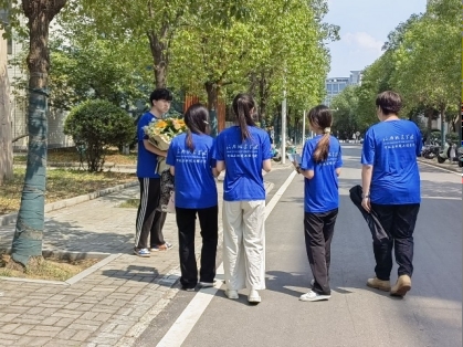 采訪結(jié)束后,我們懷著崇敬之情與老師合影留念。在這一溫馨的時(shí)刻,每個(gè)人的臉上都洋溢笑容。陽光透過玻璃傾灑而下,為我們的身影鍍上一層淡淡的光輝,仿佛在訴說著這采訪成為永恒的記憶。老師那和藹的笑容與我們青春的面龐相互映襯,這畫面不僅定格了此刻的美好,更象征著兩代人之間對國家貢獻(xiàn)的接力,熠熠生輝,照亮我們前行的道路。