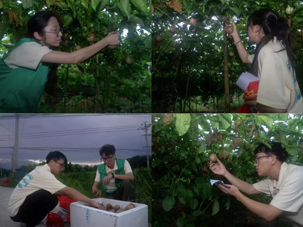 圖為團(tuán)隊(duì)成員仔細(xì)確認(rèn)百香果是否達(dá)到采摘標(biāo)準(zhǔn)