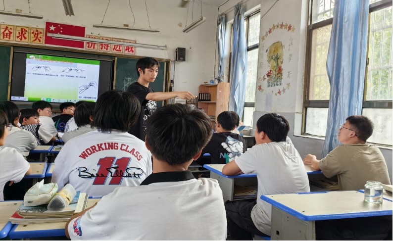 初三的孩子們在課堂上露出對知識的渴望,目不轉睛地看著老師給他們帶來的化學儀器展示,他們明亮的眸子里閃爍的是智慧的光芒。“傳道授業解惑也”,在此刻展現的淋漓盡致,盡管農村的教育資源匱乏限制了他們的眼界,但是卻擋不住他們對學習的熱愛,對沖出農村去闖蕩的熱血。透過窗戶的陽光洋洋灑灑的落在孩子們的笑臉上,他們上課積極的互動回應,掀動了支教老師的思緒;他們的蓬勃的朝氣,感染了支教老師的心;他們骨子里的不甘平凡,觸動了支教老師的魂。哪怕只能做一只小小的“螢火蟲”,也要拼盡全力去照亮周圍的世界,支教老師們深知肩上的責任,笑著回應他們:“來,同學們,接著下一個知識點……”