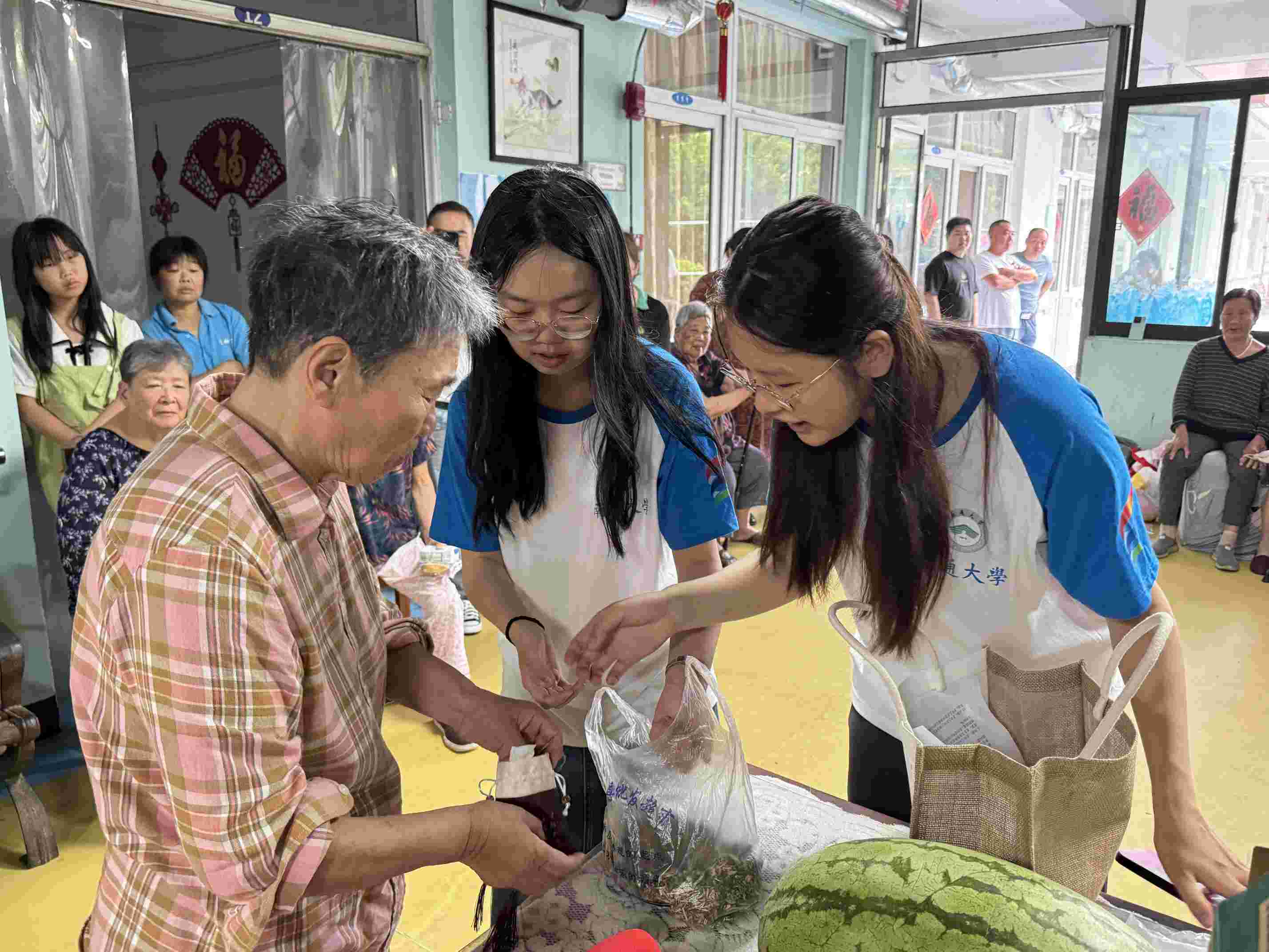 活動中,志愿團成員先向老人們分發愛心物資并聊天解悶,使得他們獲得物質溫暖的同時,感受到來自志愿團隊的精神陪伴力量。
