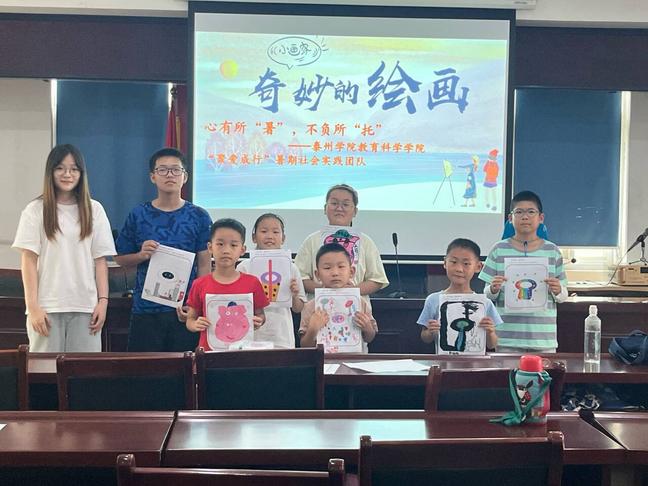妙手繪童年,拾趣好時光。在本次繪畫特色課堂,不僅激發了孩子們對美的追求和創造力的釋放,更在他們心中種下了希望與夢想的種子。接下來,泰州學院教育科學學院“聚愛成行”暑期社會實踐團隊的志愿者老師將繼續開展特色課堂,讓孩子們獲得知識和藝術的滋養,共同繪制出一幅幅更加燦爛輝煌的教育畫卷。
