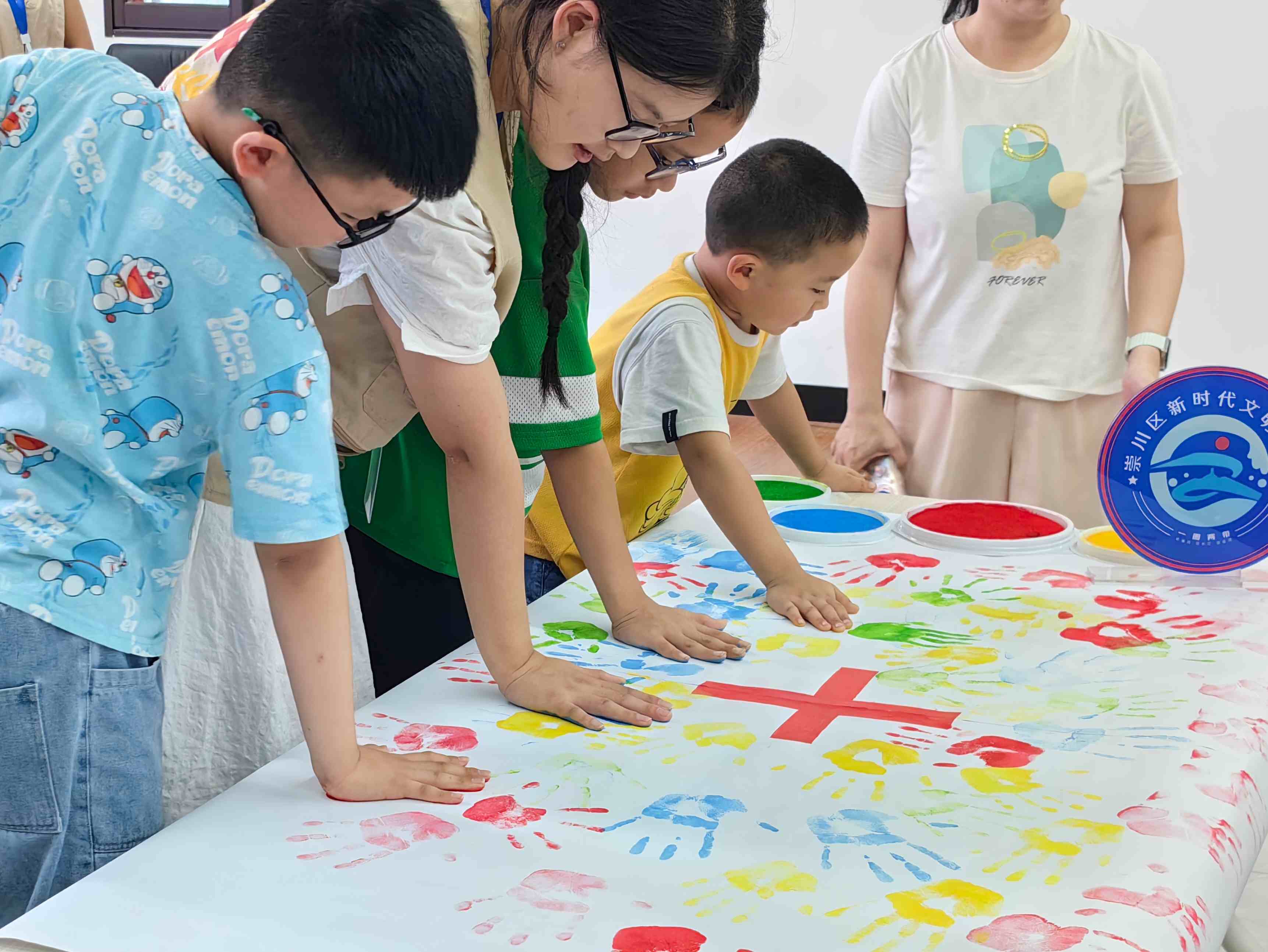 志愿者們首先與大家進行印泥手印互動游戲,他們引導孩子們在紅十字標志周圍印上五彩手印,讓“紅十字”這一象征生命與希望的標志在每個人心中更加鮮明。這場互動更像是一場心靈契約,手印的層層疊加,不僅鐫刻下每位參與者獨一無二的印記,更匯聚成了一股強大的力量,象征著大家心手相連、團結一致,共同許下了守護生命安全的莊嚴誓言。
