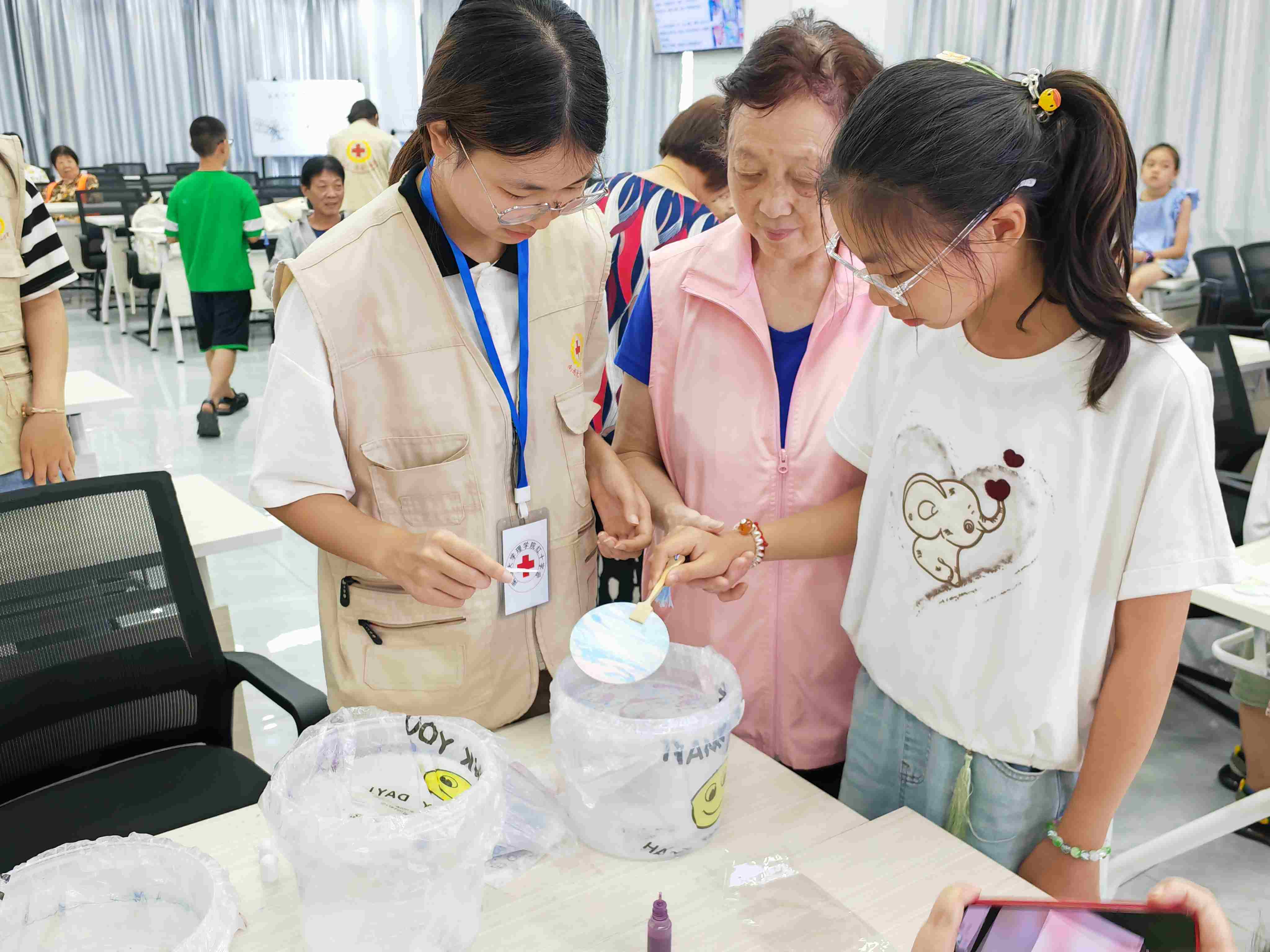 志愿者們在孩子們創作過程中,耐心提供幫助和指導,鼓勵他們大膽發揮想象力。當孩子們完成一件作品時,志愿者們總是熱情地給予贊賞和掌聲,增強孩子們的自信心和成就感。每一位志愿者都積極參與其中,他們的耐心和細致讓孩子們感受到了來自紅十字實踐團的關愛和支持。