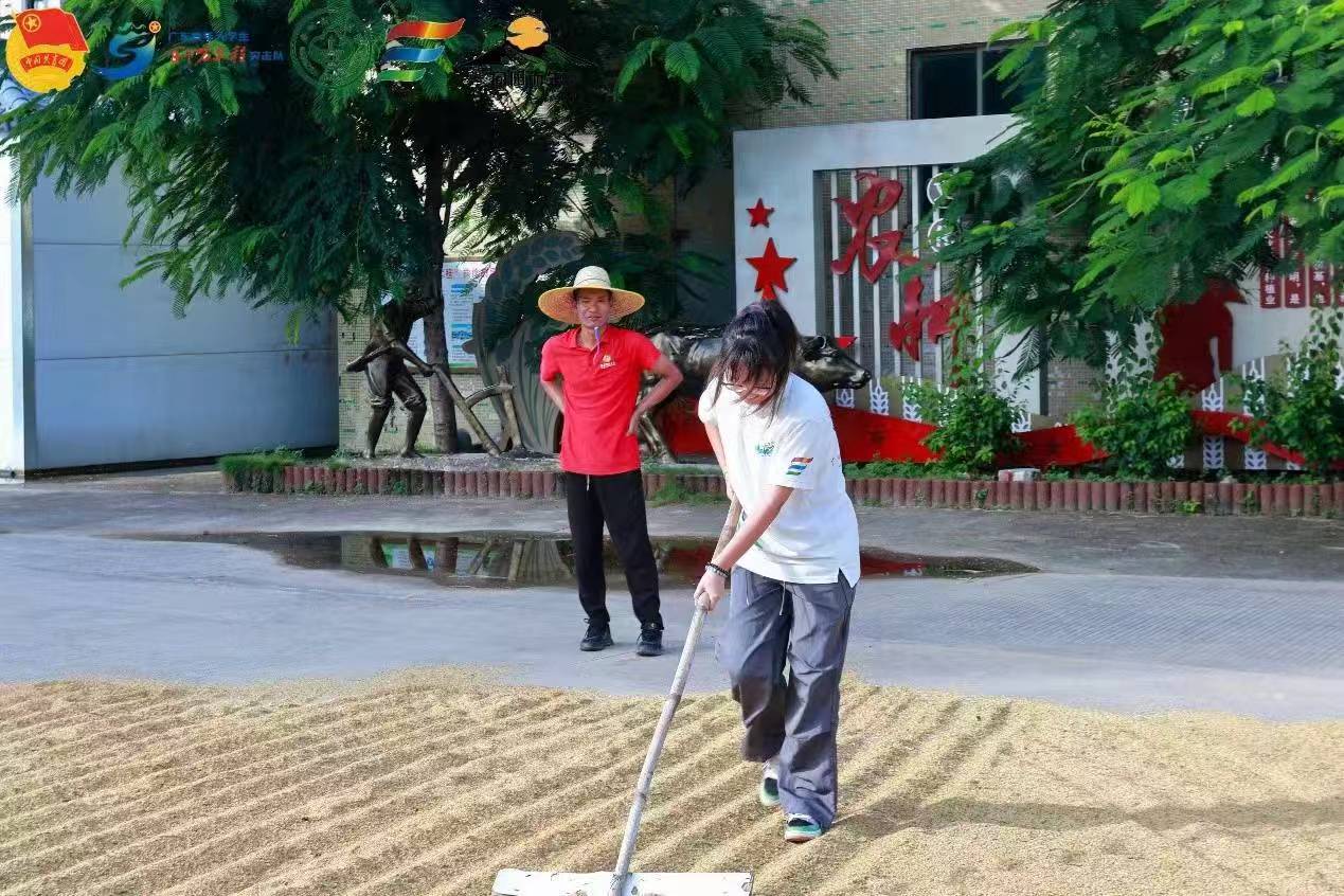 麥田綠意盎然,見證農(nóng)業(yè)新希望。首先,實踐隊一行來到了廣袤的麥田。金色的陽光灑在綠油油的麥浪上,一片生機勃勃。微風(fēng)的吹拂,陽光的溫度,讓隊員們想起這段時間的故事,感受到了當(dāng)?shù)剞r(nóng)民和土地之間的情誼。隨后,實踐隊參觀了陽西絲苗米強農(nóng)加工基地。這里,機器轟鳴,自動化生產(chǎn)線高效運轉(zhuǎn),將一粒粒稻谷轉(zhuǎn)化為晶瑩剔透的大米。隊員們近距離感受了從田間到餐桌的全鏈條生產(chǎn)過程,對現(xiàn)代農(nóng)業(yè)的智能化、自動化水平贊不絕口。加工基地的科技賦能,讓隊員們領(lǐng)略到了現(xiàn)代農(nóng)業(yè)的無限風(fēng)采。