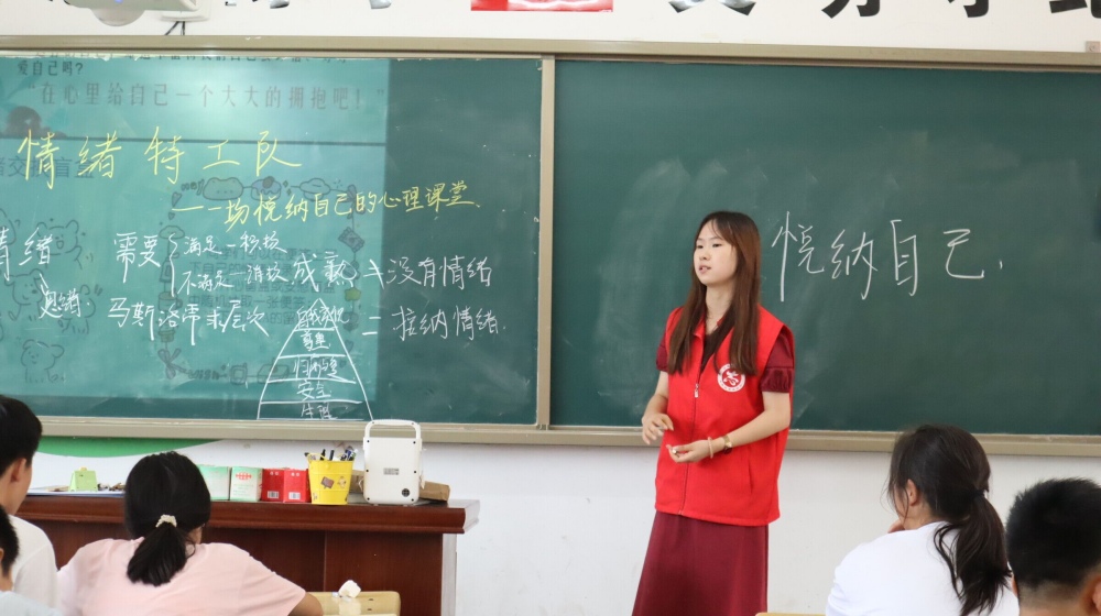 為關注青少年心理健康,幫助學生合理管理情緒、悅納自我,從而增強自信心,引導形成積極向上的班級氛圍,7月22日下午,南京財經大學信息工程學院“豫你偕行,燭光輝映”支教團隊赴河南省新鄉市輝縣市南寨鎮中心學校,開展了以“情緒特工隊,一場悅納自己的心理課堂”為主題的課程,以皮克斯電影《情緒特工隊》為背景,帶領學生與心交匯,走近自己、正視自己、悅納自己。