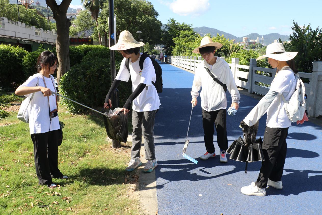 彎腰拾取,無痕河畔。6日,實踐隊前往沙溪河畔開展巡河護河實踐行動,實踐隊員們分為兩支小隊,以懸索橋為起點,沿相反方向進行沿岸環境維護。途中,兩支小隊隊員不僅進行了水樣采集點勘測,還將居民丟棄在草坪、臺階和河岸邊的紙巾、煙頭、塑料袋以及飲料瓶等生活垃圾清理干凈,美化沙溪河畔。