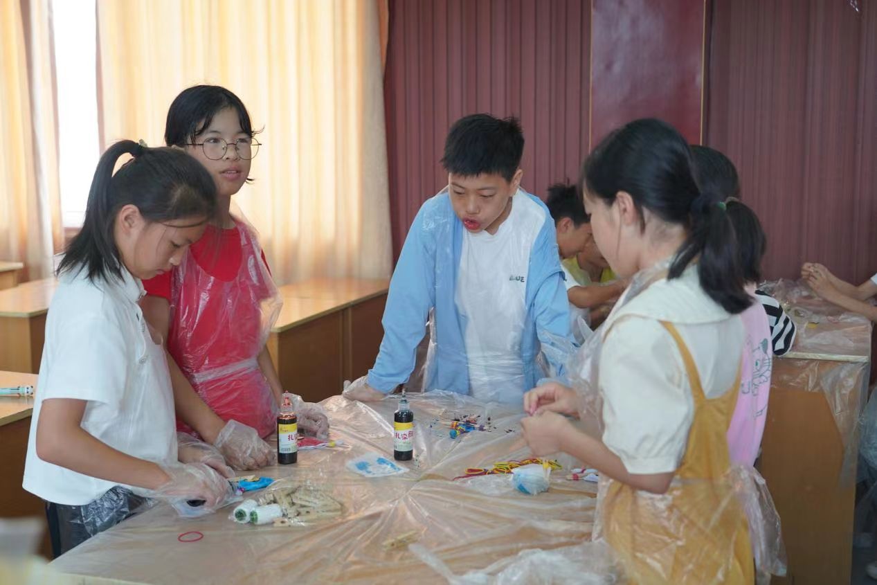 寧波大學教師教育學院7月26日訊(通訊員 陳魏)在夏日的溫柔光影里,寧波大學教師教育學院“遇見小分隊”攜手共青團象山縣委,踏入了象山縣非物質文化遺產館的深邃殿堂,編織了一場場關于傳統與青春交織的美妙夢境。這不僅是一次對國家非物質文化遺產保護與傳承政策的深情響應,更是在教育“雙減”的春風下,探索多元化教學模式、豐富學生精神世界、點亮青春色彩的生動實踐。在這里,古老的扎染藝術與靈動的魚燈制作,如同兩股清泉,在校園的每一個角落潺潺流淌,繪就了一幅幅色彩斑斕、意境悠遠的青春畫卷。