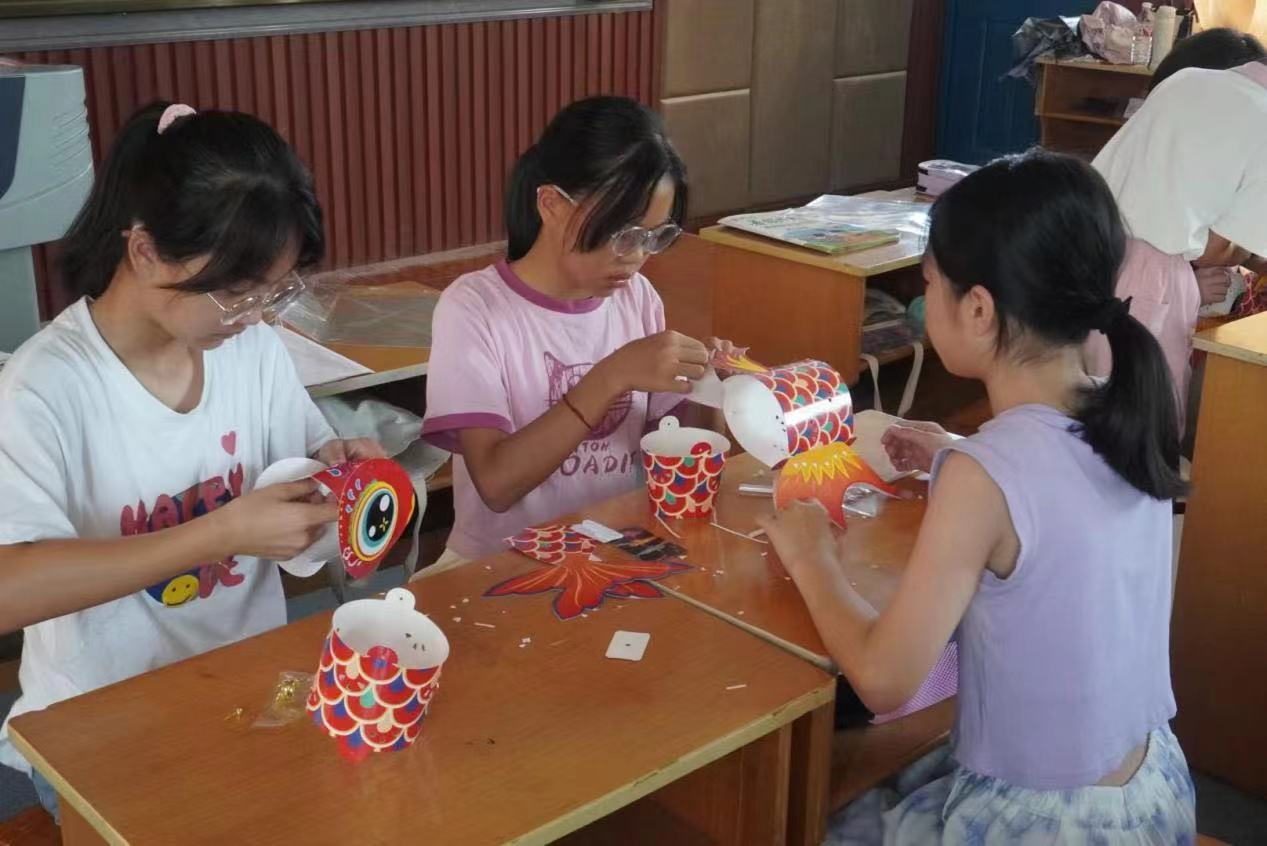 在親身體驗非遺魚燈制作之后,小分隊成員們毅然決定也將這一技藝帶入課堂。7月24日上午,魚燈制作課程在高塘學校舉行。黃老師首先以生動的語言為學生們描繪了魚燈的歷史淵源與獨特魅力,激發了大家對這門古老技藝的濃厚興趣。隨后,余老師詳細講解了魚燈的結構與制作流程,并親自示范。