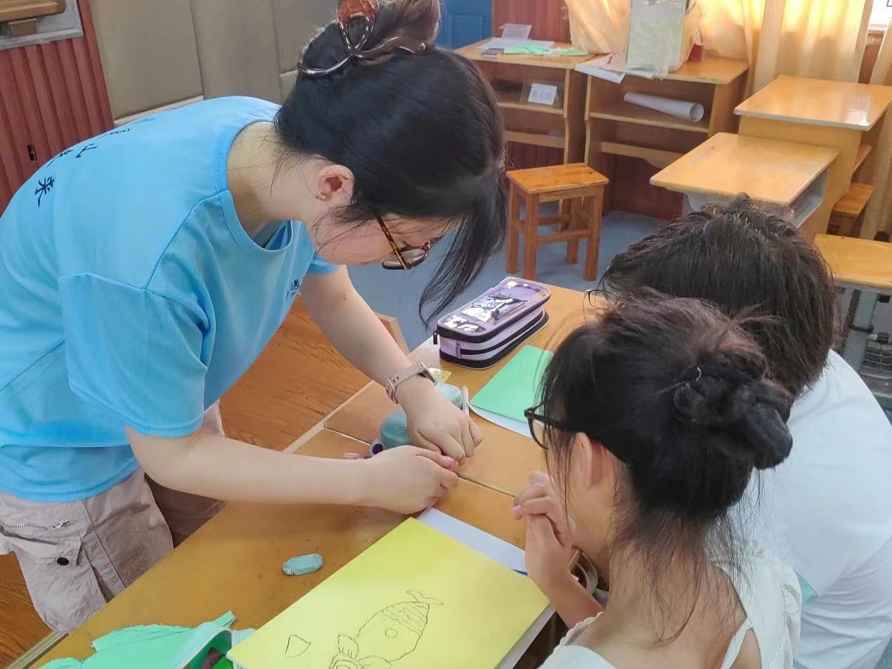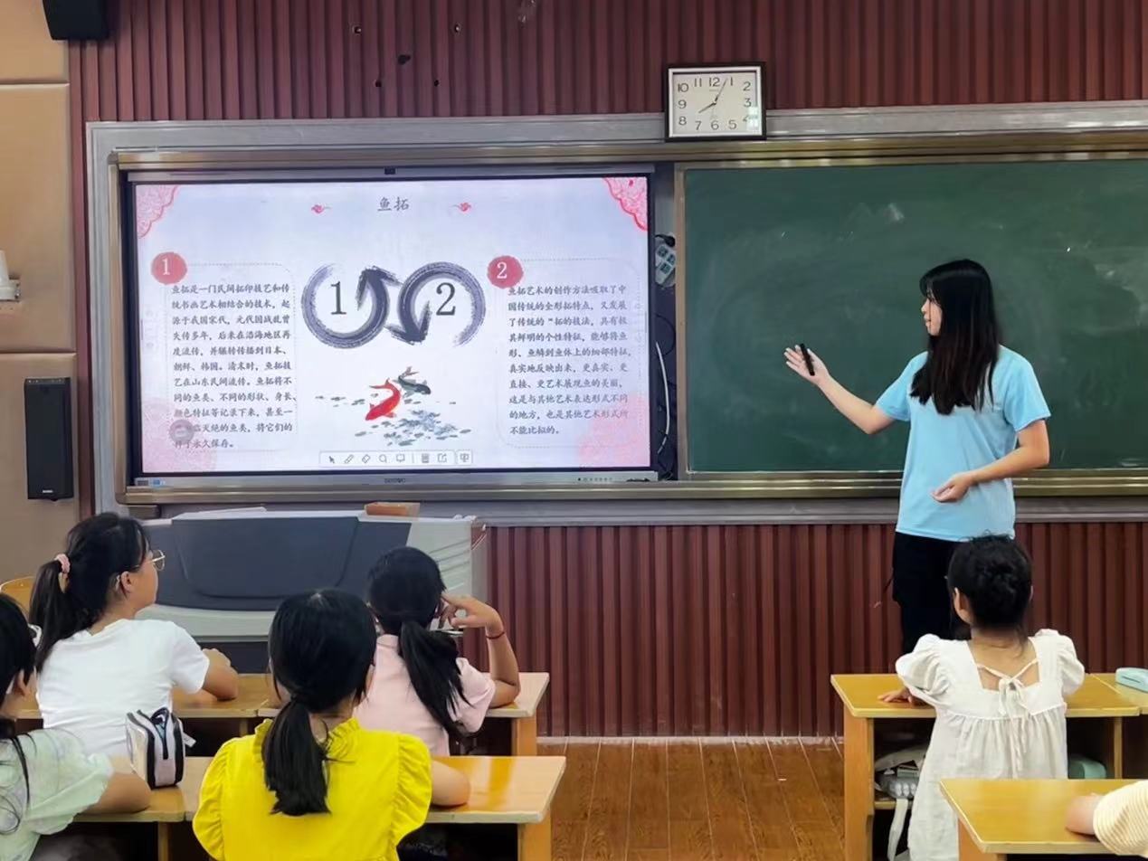 魚拓技藝:讓非遺文化在紙上“活”起來7月25日,“遇見小分隊”在高塘學校繼續深化非遺文化的教學活動,開展了“魚躍紙上,拓藝傳承——讓非遺魚拓在課堂上‘活’起來”的課程。這次活動,不僅是對團隊責任感的直接體現,更是對非遺文化傳承與創新的一次積極探索。
