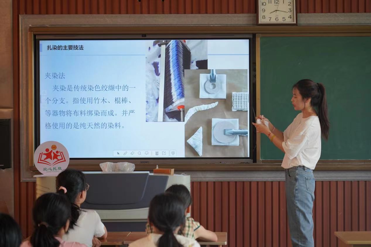 “今天的學習讓我感受到了前所未有的快樂與滿足。我以前覺得扎染很難,沒想到我也可以做出那么好看的扎染作品,真的很有成就感!”馮家棟同學興奮地表示。授課老師朱老師也對此次課程給予了高度評價:“我們深入研究扎染技藝,不斷改進課堂設計,力求讓這節課更加生動有趣,讓學生們在動手實踐中感受傳統文化的魅力。”