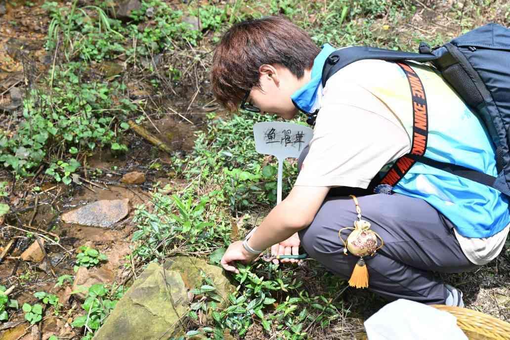 實踐團在當地向導的帶領下,踏入了茂密的山林之中,向導沿途向成員們介紹各種中草藥的名稱、形態、功效以及生長環境。實踐團成員們認真聆聽、仔細觀察、親自動手挖掘采摘。
