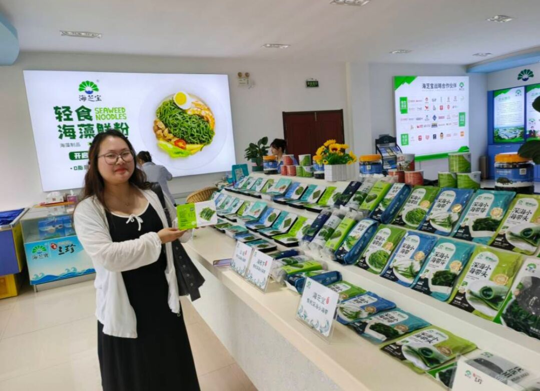 圖為實踐隊員參觀海帶加工品展廳。中國青年網通訊員 周鈺晴 供圖