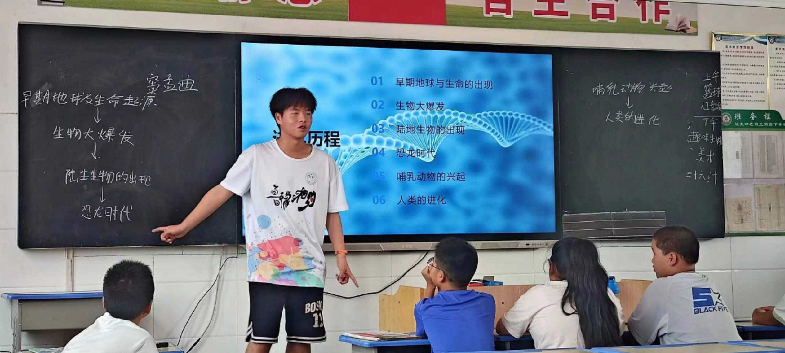 隨后,郝銘雨代表支教隊發表講話,回應了校長對于支教隊的熱切期望,并表示,會以愛心、耐心、真心認真對待本次支教活動,為學生們帶來一個愉快充實的假期。