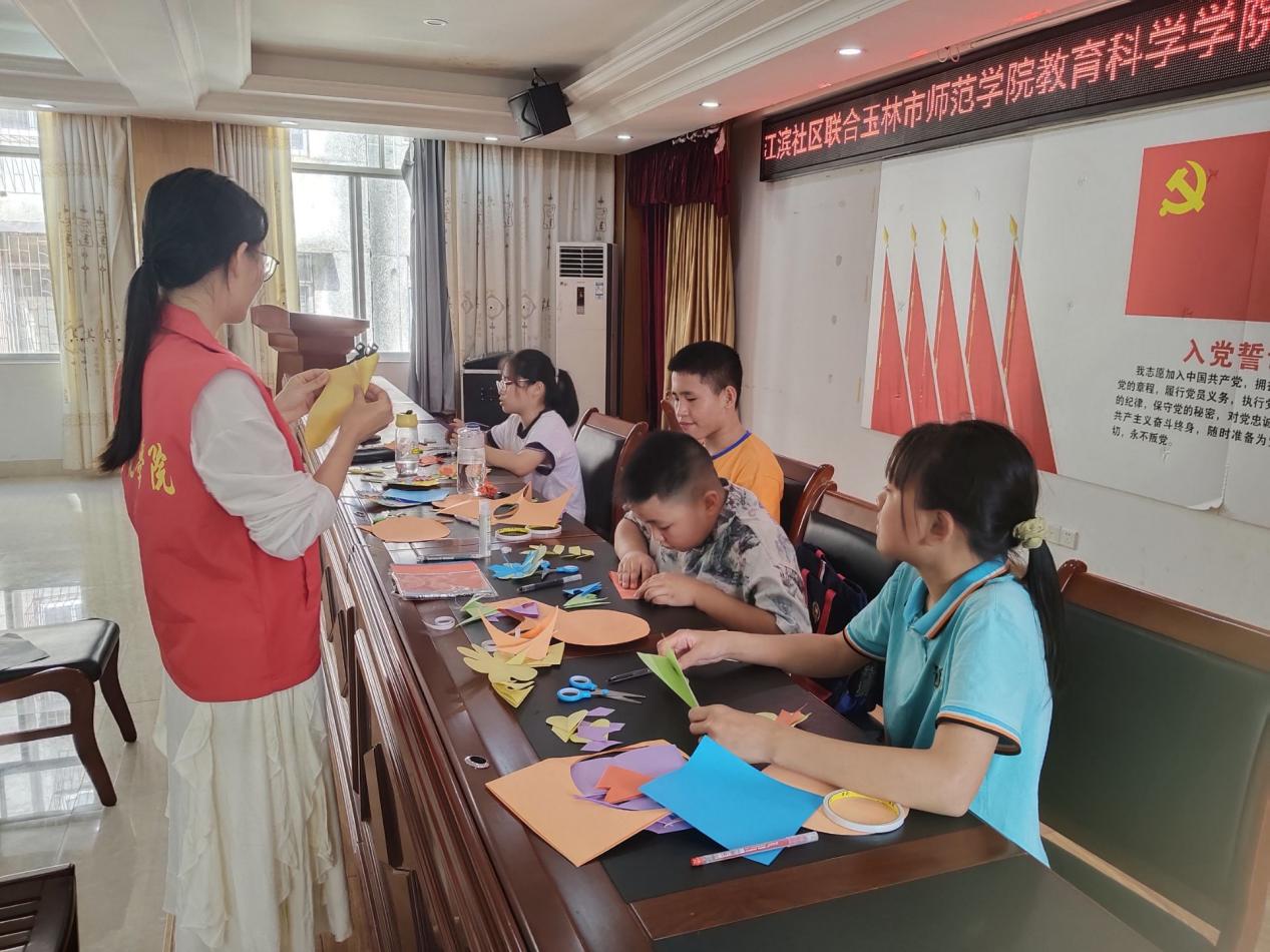 二、科普進社區(qū),點亮科學(xué)夢想此次支教活動特別邀請了玉林師范學(xué)院教育科學(xué)學(xué)院學(xué)生“STEM科普團隊”,為社區(qū)孩子們帶來了一場精彩的科普盛宴。通過趣味橫生的科普實驗,如搭建廊橋等,孩子們在動手實踐中感受科學(xué)的魅力,激發(fā)了他們對科學(xué)的濃厚興趣。