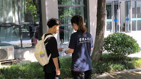 圖為實踐團隊正在對教職工進行五經普宣傳。通訊員 丁怡凡 攝