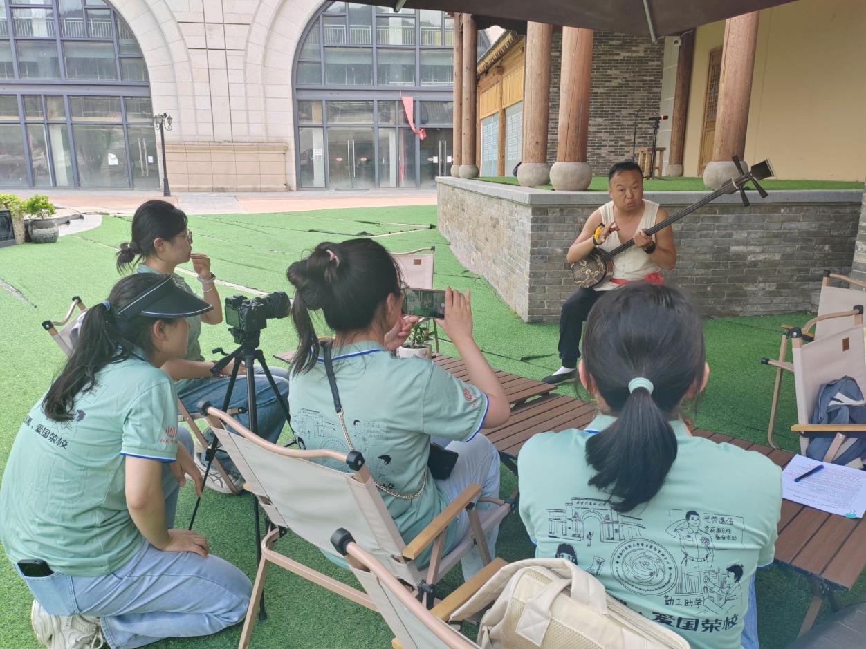 隨著夕陽西下,實踐團來到了延安市1938街區,繼續進行調研活動。在這里,團隊成員們與商販、游客熱情交流,進一步推廣陜北說書文化,探討其在鄉村振興中的作用。此外,團隊成員們還與當地的陜北安塞腰鼓文藝工作者進行了深入交流,共同探討非遺文化的保護與發展,以及如何將陜北說書與其他非遺項目相互融合,創造出更具時代特色的藝術形式。