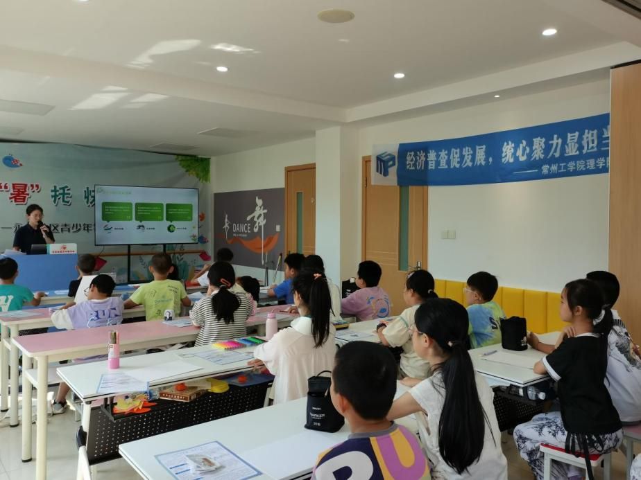 圖為暑托班孩子在團(tuán)隊(duì)成員的指導(dǎo)下進(jìn)行五經(jīng)普宣傳海報(bào)制作。中青網(wǎng)通訊員 丁怡凡 供圖
