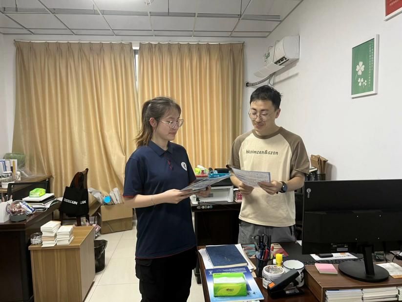 圖為實(shí)踐隊(duì)員們?cè)谝黄饻?zhǔn)備經(jīng)濟(jì)普查工作.通訊員 丁怡凡 供圖