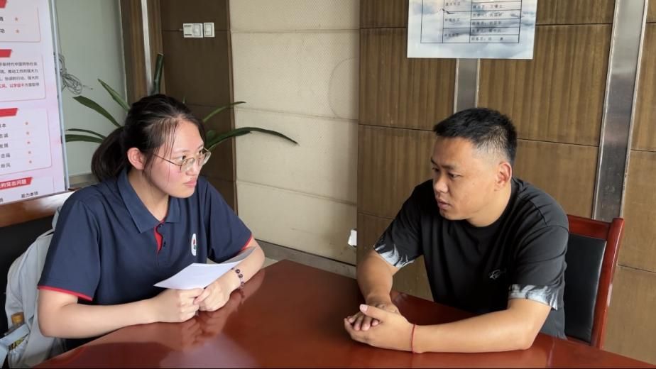 圖為實(shí)踐隊(duì)員高瑩正在對(duì)社區(qū)工作人員進(jìn)行五經(jīng)普相關(guān)工作的采訪。通訊員 丁怡凡 供圖