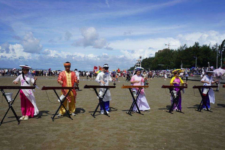 同慶哈節,共賞民族風情。農歷六月初九至十六,各界人士齊聚𬇕尾共慶京族哈節。京族哈節作為國家級非物質文化遺產,是京族一年一度最盛大的傳統節日。它分為迎神、祭神祭祖、鄉飲娛樂和送神四個環節。在祭神儀式上,京族人民用豬和雞進行祭祀,由哈妹接替唱哈,通過舞蹈表達對神靈的敬重。同時,京族人民在海邊展示傳統勞作方式和技藝,在花棍舞、天燈舞和獨弦琴演奏非遺展演活動中展現京族獨特的魅力。