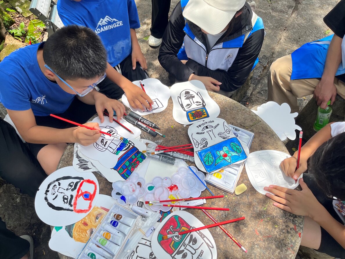 彩繪儺韻,童心傳承。兒童是之后國家建設的接班人和文化傳播的使者。為進一步加深當地孩子對毛南族民族文化的理解和感受,實踐團隊在南昌屯舉辦了"彩繪儺韻,童心傳承"以儺面具為主題的繪畫活動。看到孩子們用五顏六色的畫筆畫著屬于自己的儺面具,團隊成員和當地村民都感到很欣慰。這次活動不僅讓孩子們親身體驗了儺面具文化的魅力、激發了他們對傳統文化的興趣和熱愛,也為他們的童年增添了一抹亮麗的色彩。