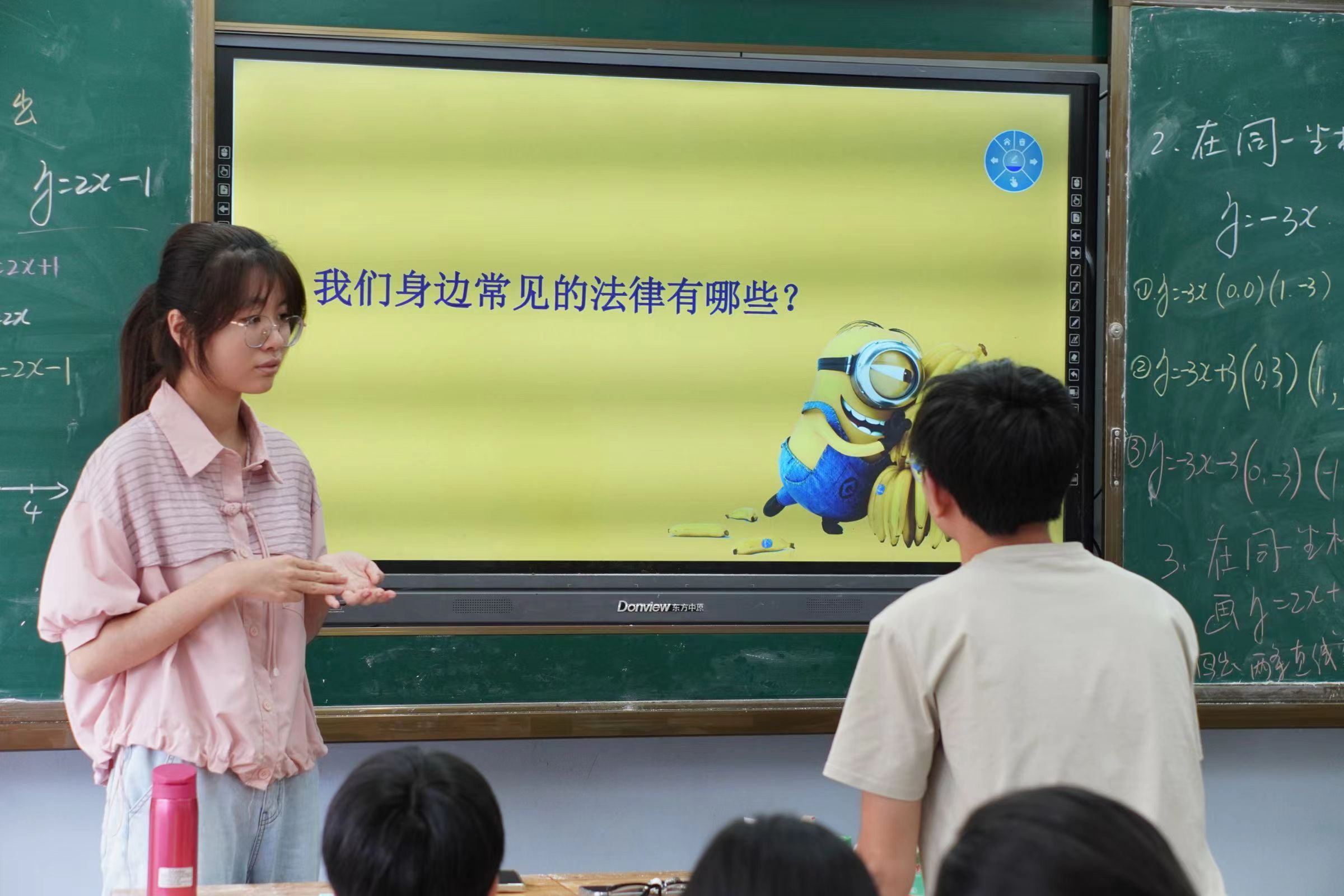 法治教育是建設法治中國必要的手段。“青桐計劃”是蘇州大學王健法學院的隸屬團隊,團隊成員多具備相應法學基礎并能夠將以學以致用。在支教過程中,支教團隊結合法學背景,創新教學模式,將法律學習融入實踐活動。努力聯系當地學生成長環境、打造合適的法律課程、將與孩子們有關的法律問題以PPT,問答,案例的方式進行呈現,以幫助當地學生培養法律思維,獲取對應知識,進而成功提升實踐能力是支教成員的普法出發點。