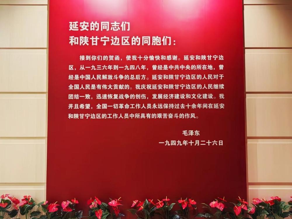 圖為毛主席對延安和陜甘寧地區同胞的寄語勞動模范是國家的脊梁、民族的精英,他們在大生產運動中展現出的精神品質,成為了共和國的寶貴財富。陜甘寧地區的大生產運動,是中國共產黨人與陜甘寧邊區人民同甘共苦的真實寫照,是自力更生的壯麗篇章。而南泥灣精神和勞模精神,則是延安精神的原生形態,它們激勵著我們不斷前行。