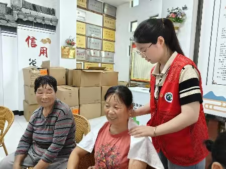 村民體驗團隊提供的按摩服務(安徽中醫藥大學李璐攝)