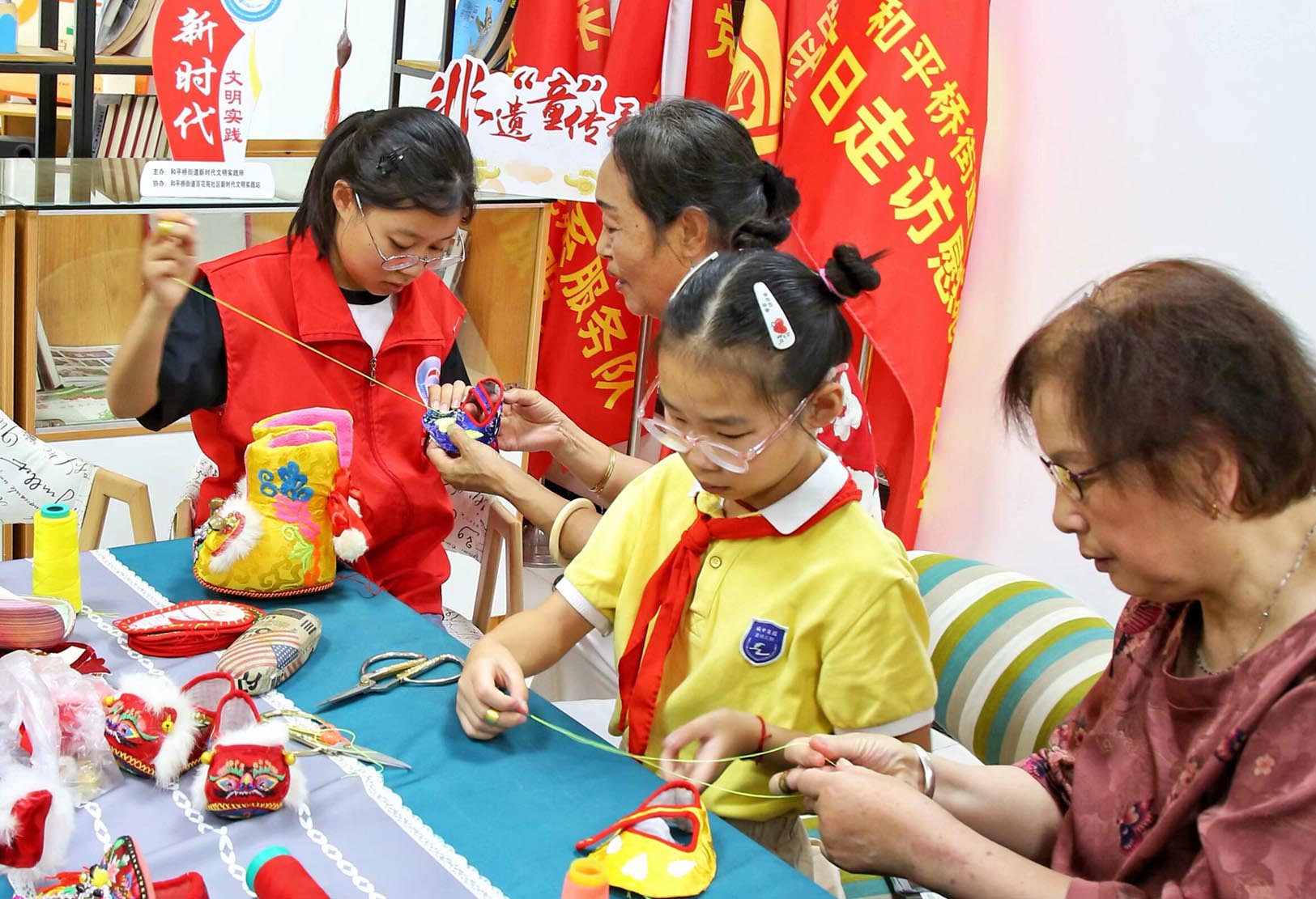 為讓轄區青少年在非遺體驗中感受非遺文化的獨特魅力,從而更好的傳承和弘揚中華傳統文化,7月14日上午,和平橋街道百花苑社區新時代文明實踐站、關工委、團支部舉辦“巧手做虎鞋,非遺童傳承 ”活動,帶領青少年們開啟了一場非遺體驗之旅。活動中,實踐團成員為同學們介紹非遺傳承人楊和英老師及非遺工坊項目開展情況。隨后楊老師給學生講述了她與“虎頭鞋”的故事,如何傳承與守護“虎頭鞋”這一傳統文化技藝。