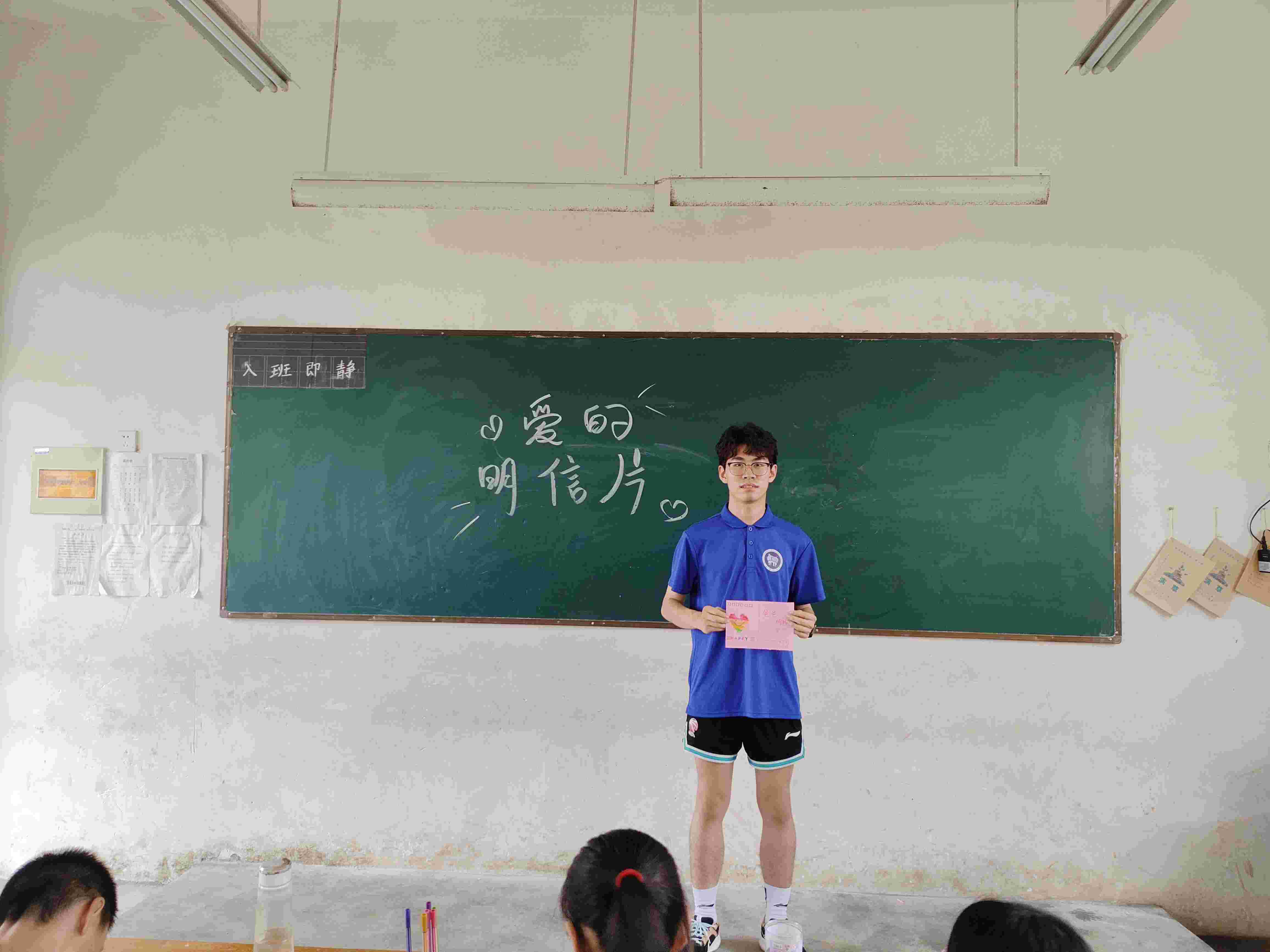 孝心是中華民族的傳統(tǒng)美德,是維系家庭和社會和諧的重要紐帶。它不僅是子女對父母的尊重和愛護,更是對生命的感恩和傳承。因此,弘揚孝道是每個人的責任。大學生也義不容辭。“愛的明信片”便是該支教團隊為此設(shè)計的活動。活動內(nèi)容是引導孩子們以明信片為載體大方表達出他們對父母的愛。大小不一的字跡,各式各樣的字體,半個小時的時間內(nèi),婆娑莎莎地被寫下。昔日吵鬧的教室此時安靜的出奇,孩子們一聲不吭,想說的盡在字里行間。