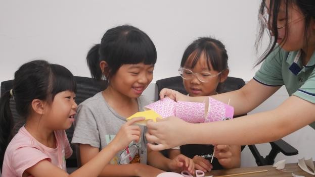 盛夏螢火蟲隊注重美育實踐,結合多元化教學形式,推進多學科融合,將歷史文化傳承、生態文明建設、心系桑梓家國的精神貫穿課程,促使學生深入了解僑鄉文化的內涵并自覺承擔傳承責任。同時,課程后期的游園會特別設置了手工作品展,充分展現學生特長與風采,提升學生自信心,打造出昂揚向上、文明高雅、充滿活力的美育課堂氛圍。多彩課堂美童心,盛夏螢火蟲隊始終堅持“理論引領,就地取材,實踐創新”的理念,從開平特色文化出發,為沙塘鎮學生帶來豐富多彩的美育教育課程,始終堅持在美育教育中浸潤多元教育理念,為點亮沙塘土壤培育中堅力量。