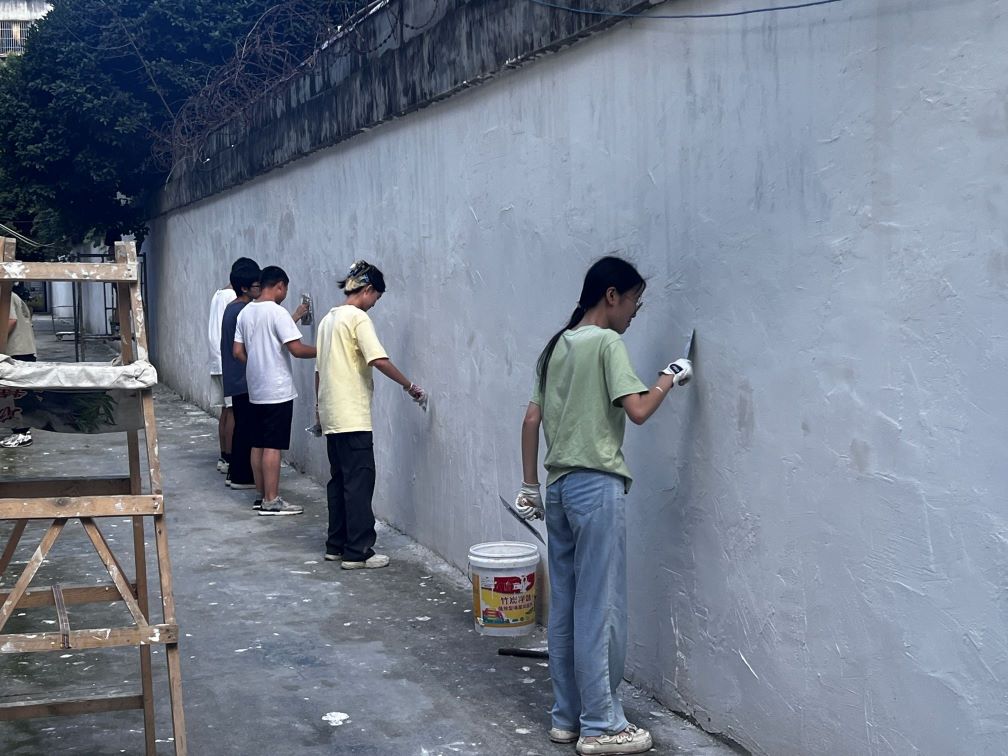 圖為實踐團隊開始給墻面刷白