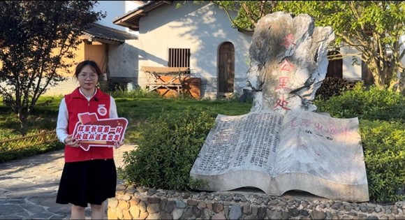 (圖為實(shí)踐隊(duì)的隊(duì)員在中復(fù)村錄制《紅軍長征的光輝起點(diǎn)——中復(fù)村》主題思政微課,用當(dāng)代青年喜歡的方式傳播、弘揚(yáng)長征精神。)