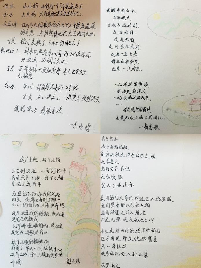 創新課堂模式和采用沉浸式教學方式,引導同學們書寫對家鄉的熱愛與期望。課程依據合水獨特的自然風光與悠久人文歷史,設計文學探索活動,讓學生化身“鄉土小詩人”,