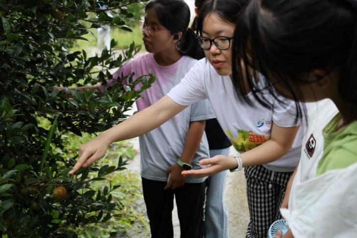 圖7 隊員為學生介紹油茶果(攝影:華南師范大學 范霈誠)