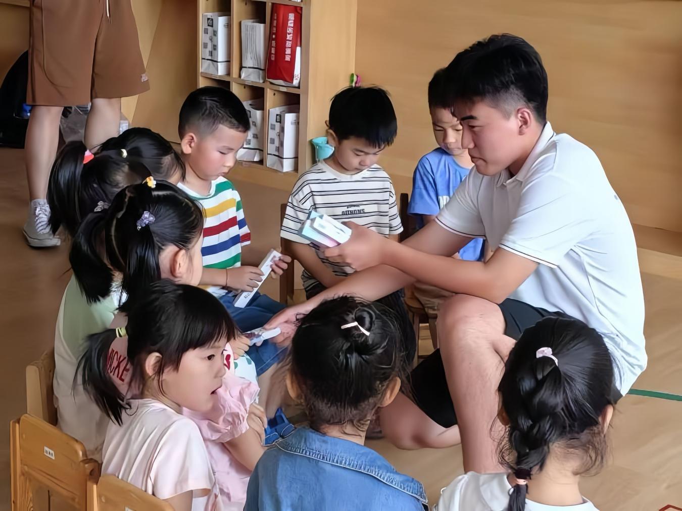 講座結(jié)束后,實(shí)踐隊(duì)員設(shè)計(jì)了一些簡(jiǎn)單的提問(wèn)環(huán)節(jié)。每當(dāng)一個(gè)孩子回答正確時(shí),我們就會(huì)獎(jiǎng)勵(lì)他一個(gè)小禮物。小禮物從外觀上沒(méi)有什么不同,但小禮物拆開(kāi)后都是不同的設(shè)計(jì)和顏色。這種神秘感讓孩子們充滿了期待和驚喜。孩子們積極踴躍地回答問(wèn)題,整個(gè)過(guò)程充滿了歡聲笑語(yǔ)。