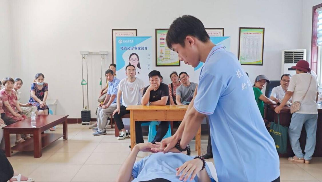 實(shí)踐團(tuán)隊(duì)的專家們?yōu)楫?dāng)?shù)鼐用駛兲峁┟赓M(fèi)的中西醫(yī)診療服務(wù),設(shè)立了一對(duì)一咨詢臺(tái),為居民解答健康問(wèn)題。西醫(yī)方面,對(duì)常見(jiàn)疾病進(jìn)行診斷,開(kāi)具處方并提供用藥指導(dǎo);中醫(yī)方面,進(jìn)行中醫(yī)的體質(zhì)辨識(shí)和脈象診斷,并提供針灸、推拿、艾灸等傳統(tǒng)中醫(yī)療法。同時(shí),實(shí)踐隊(duì)員為居民提供測(cè)量血壓、血糖等基本生理指標(biāo)的服務(wù),并發(fā)放疾病預(yù)防手冊(cè)、中醫(yī)保健知識(shí)傳單等。除此之外,實(shí)踐隊(duì)員還為居民講解了如何實(shí)施心肺復(fù)蘇術(shù)、海姆利克急救法、壓迫性止血等日常急救方法,深入介紹了心肺復(fù)蘇術(shù)的步驟和注意事項(xiàng);針對(duì)呼吸道阻塞,實(shí)踐隊(duì)員就如何處理窒息等呼吸道阻塞問(wèn)題的方法,詳細(xì)演示了如何實(shí)施后背叩擊法和人工呼吸法等;針對(duì)于出血控制,實(shí)踐隊(duì)員深入介紹了如何正確處理出血問(wèn)題,包括使用止血帶、施行壓迫止血等方法,拓展了日常急救知識(shí)。通過(guò)此次“醫(yī)路先鋒”實(shí)踐團(tuán)隊(duì)的中西醫(yī)義診活動(dòng),我們不僅為農(nóng)村居民帶去了切實(shí)的醫(yī)療服務(wù),更在他們心中種下了健康與希望的種子。
