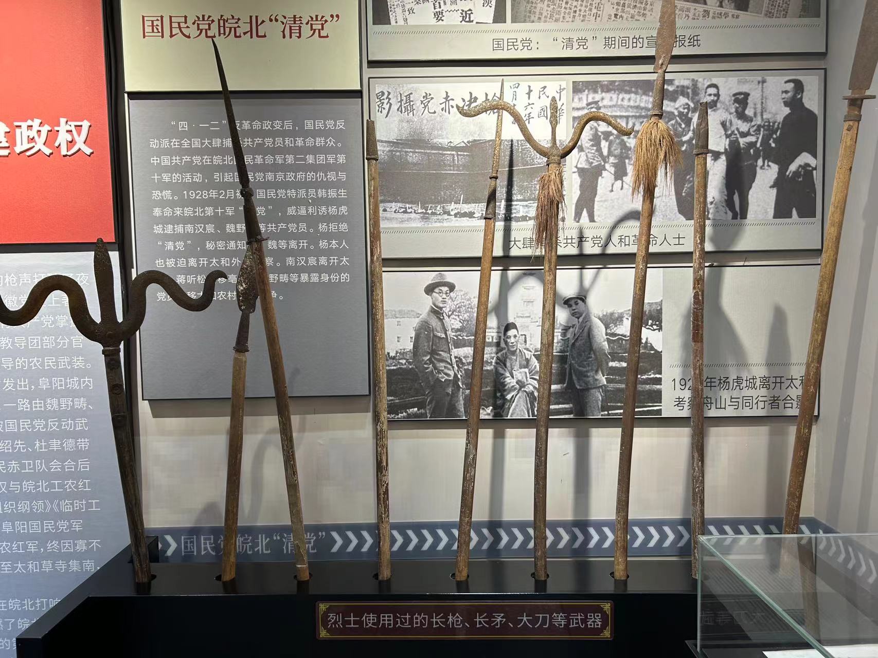 圖為四九起義紀念館內展示的烈士使用過的長槍、長矛、大刀等武器