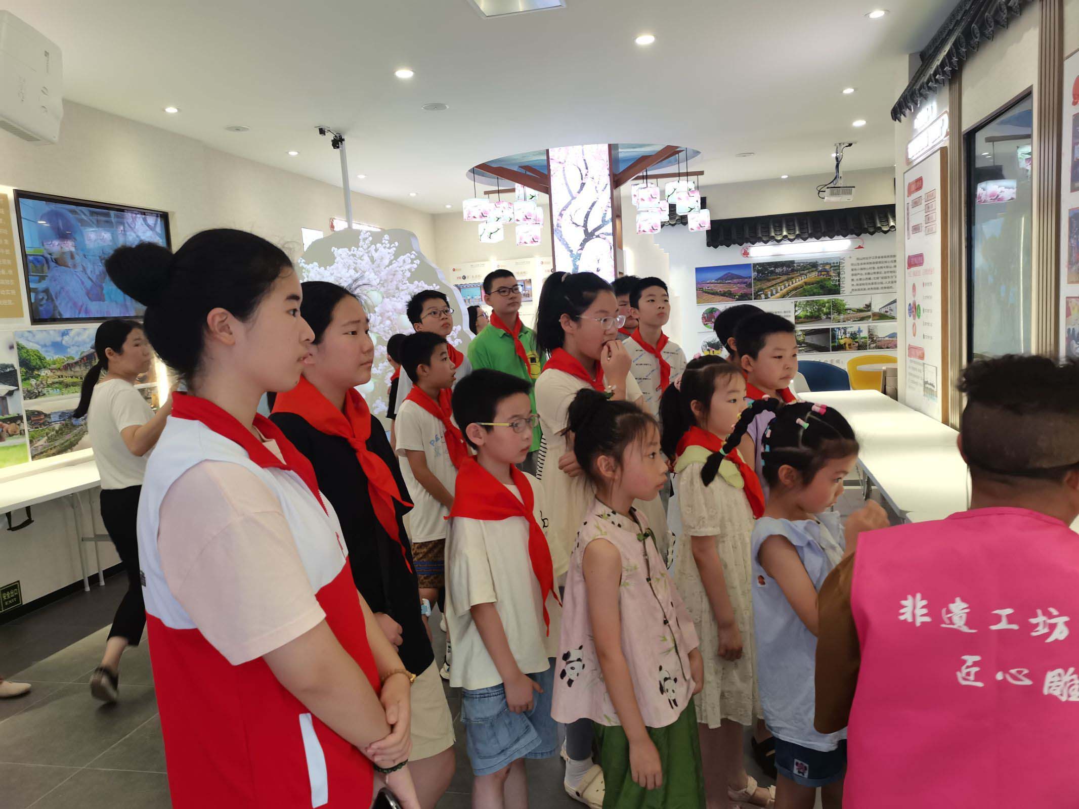 7月23日,鴻橋社區開展了“手作匠心,桃韻傳承”參觀實踐活動,旨在探秘桃木香,感受傳統文化的魅力。上午,志愿者和孩子們一起來到陽山鎮桃文化創客中心,在這里邂逅了一群特殊的創客工匠。在參觀桃文化科普展覽館的過程中,孩子們了解到了水蜜桃悠久的種植歷史;在走進“陽山村就業創業服務站”過程中,孩子們深切體會到網絡直播為殘疾人搭建起了一個自主創業的嶄新平臺,極大地促進了他們的生活質量的提升;來到桃文化制作工坊后,員工教導孩子們親自編織桃核手鏈,傳遞對生活的美好祝愿。雖然他們是殘疾人,但在絲絲縷縷的桃木香中,他們用自己的實際行動詮釋了頑強奮斗的時代精神,活出了他們的精彩人生。